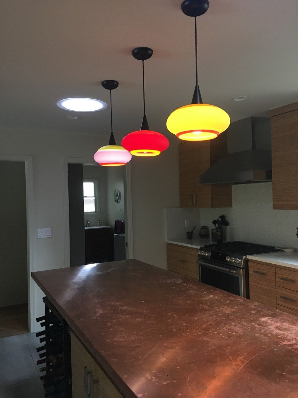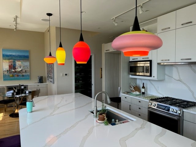 The first order I placed was for the larger group of mixed color vases. You had completed the first run and were "dissatisfied with one of two of the vases and would not send them until they were perfect." And they truly were perfect. They all arrived in good order for the mantel over a cooktop in a CEO's kitchen in Naples, Florida. The client she is in love with the vases.Thank you for contributing so much to make our visual world so much better!